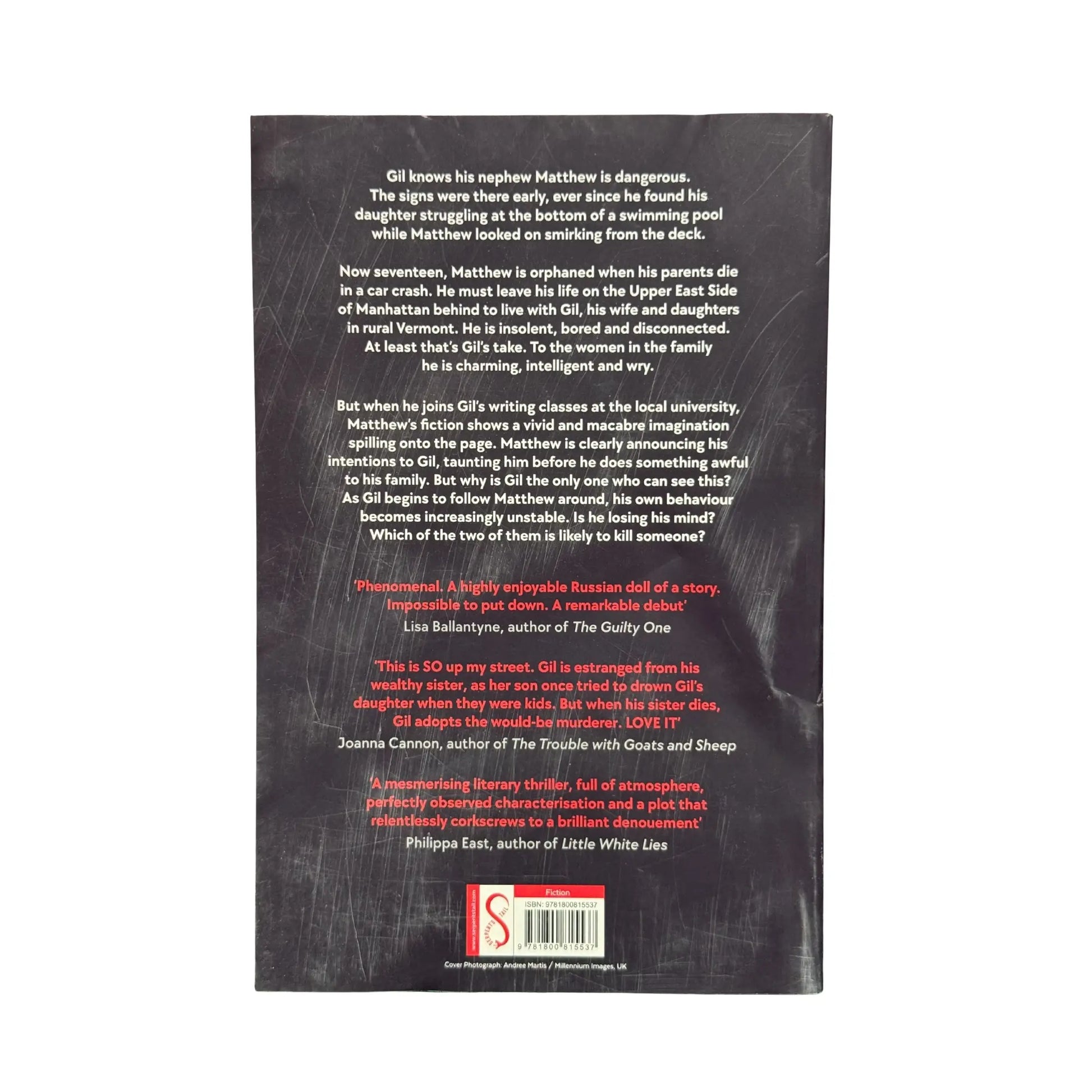 A nephew. An uncle.A psychopath - but which of them is it?Gil knows his nephew Matthew is dangerous. The signs were there early - on a family holiday Gil's daughter was discovered nearly drowning at the bottom of a swimming pool, while Matthew looked on from the deck.Now seventeen, Matthew is orphaned when his parents die in a car crash. He must leave his Upper East Side Manhattan life behind, to live with Gil, his wife and daughters in rural Vermont. He is insolent, bored, disconnected. At least that's Gil's take. To the women in the family he is charming, intelligent, wry.But when he disdainfully joins Gil's writing classes at the local university, Matthew's fiction shows a vivid and macabre imagination spilling onto the page. Matthew is clearly announcing his intentions to Gil, taunting him before he does something awful to his family. But why is Gil the only one who can see this? As Gil begins to follow Matthew around, his own behaviour becomes increasingly unstable. Is he losing his mind? Which of the two of them is likely to kill someone?