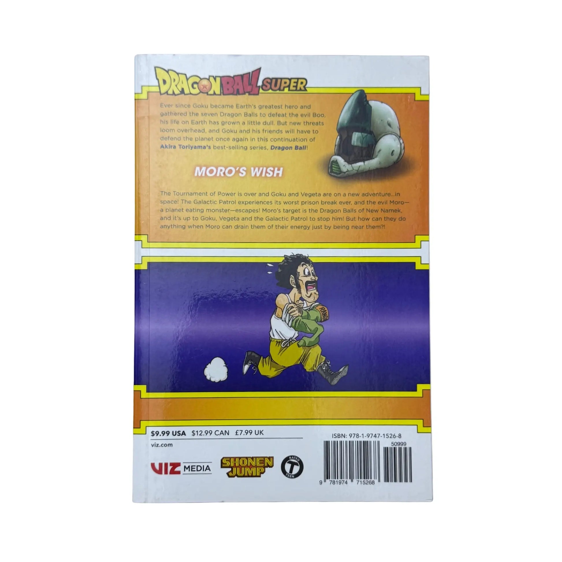 Goku’s adventure from the best-selling classic manga Dragon Ball continues in this new series written by Akira Toriyama himself!Ever since Goku became Earth’s greatest hero and gathered the seven Dragon Balls to defeat the evil Boo, his life on Earth has grown a little dull. But new threats loom overhead, and Goku and his friends will have to defend the planet once again in this continuation of Akira Toriyama’s best-selling series, Dragon Ball!The Tournament of Power is over and Goku and Vegeta have embarked on a new adventure…in space! The Galactic Patrol experiences its worst prison break ever, and the evil Moro—a planet-eating monster—escapes! Moro’s goal is attaining the Dragon Balls of New Namek, and it’s up to Goku, Vegeta and the Galactic Patrol to stop him! But how can they do anything when Moro can drain them of their energy just by being near them?!