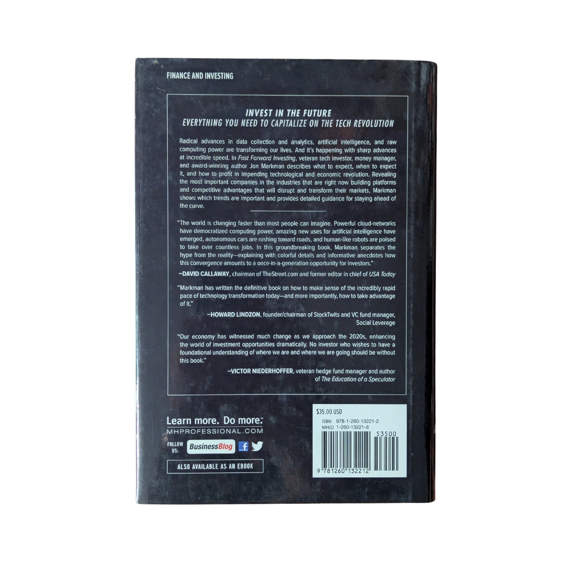 Invest in the future! Everything you need to capitalize on the tech revolutionOur lives are on the verge of being reshaped by advanced technology. Fast Forward Investing provides the knowledge and insight you need to build and maintain your portfolio accordingly. Author Jon D. Markman is a veteran tech investor, money manager, and award-winning author of the popular daily newsletter Tech Trend Trader. There’s no one more qualified to help you design a portfolio that extracts huge profits from the shares of public technology companies and helps you augment your gains with conviction during stretches of high volatility. In Fast Forward Investing, Markman describes what to expect, when to expect it, and how to profit in impending technological and economic revolution. Revealing the most important companies in the industry that are right now building platforms and competitive advantages that will disrupt and transform their markets, he shows which trends are important and provides detailed guidance for staying ahead of the curve.Radical advances in data collection and analytics, artificial intelligence and raw computing power are changing human history. And it’s happening with sharp advances at incredible speed. Make sure you’re at the tip of the spear with Fast Forward Investing.