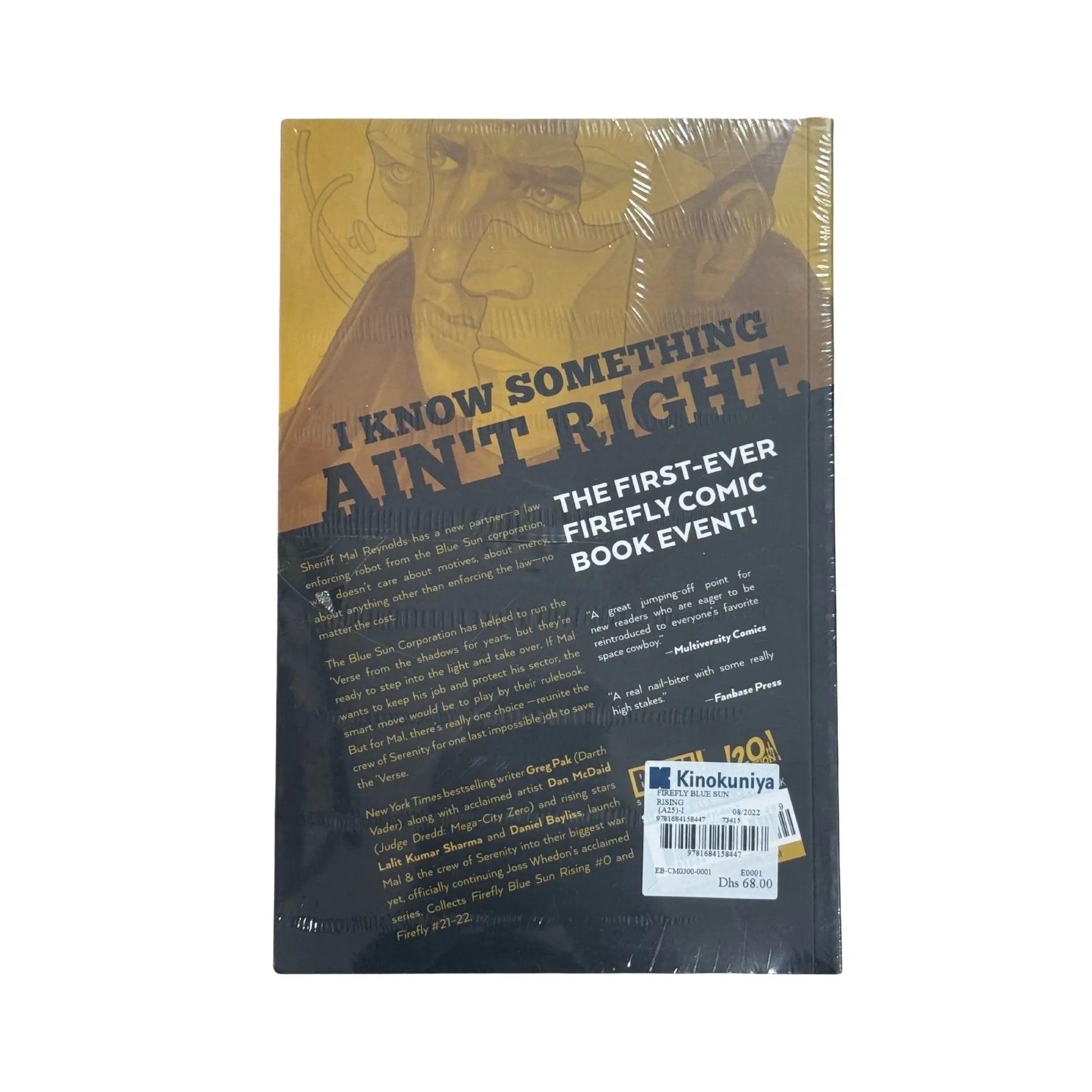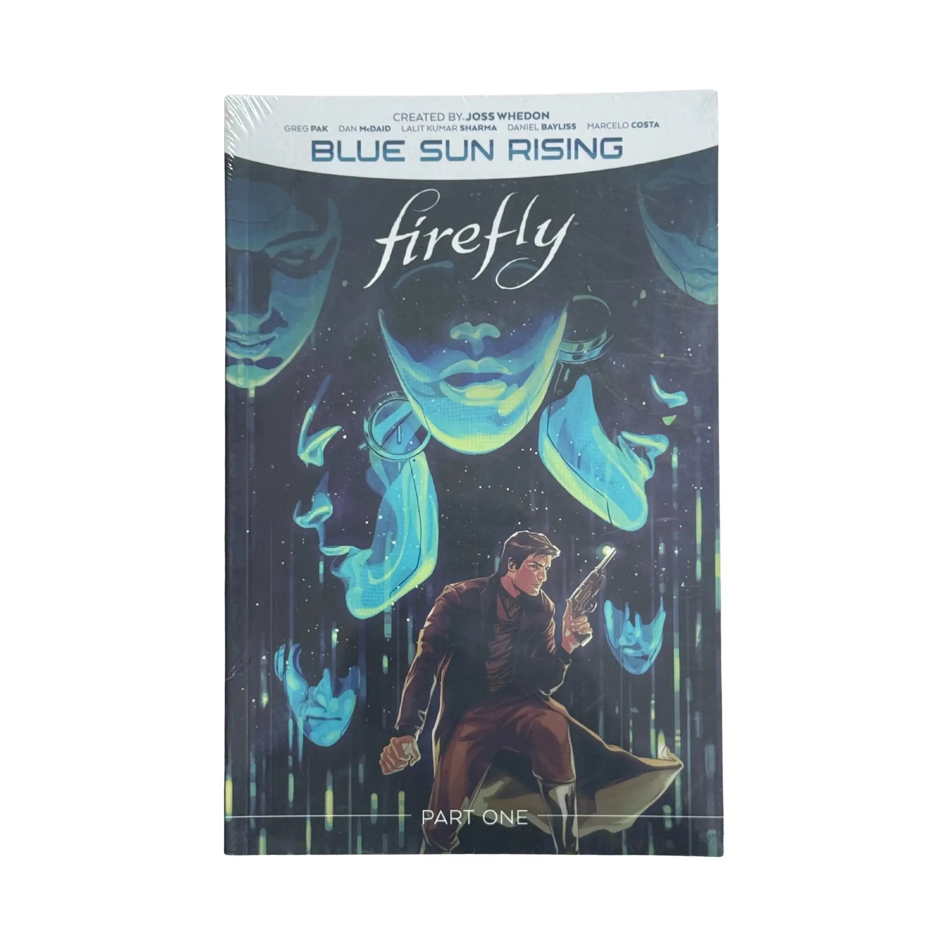 THE FIRST-EVER FIREFLY COMIC BOOK EVENT!Sheriff Mal Reynolds has a new partner—a law enforcing robot from the Blue Sun corporation, who doesn't care about motives, mercy, or anything other than enforcing the law—no matter the cost. The Blue Sun Corporation has helped run the ‘Verse from the shadows for years, but they’re ready to step into the light and take over. If Mal wants to keep his job and protect his sector, the smart move would be to play by their rulebook. But for Mal, there’s really one choice—reunite the crew of the Serenity for one last impossible job to save the ‘Verse. New York Times best-selling writer Greg Pak (Darth Vader) and acclaimed artist Dan McDaid (Judge Dredd: Mega-City Zero) launch Mal & the crew of Serenity into their biggest war yet, officially continuing Joss Whedon’s acclaimed series. Collects Firefly: Blue Sun Rising #0 and Firefly #21-22.