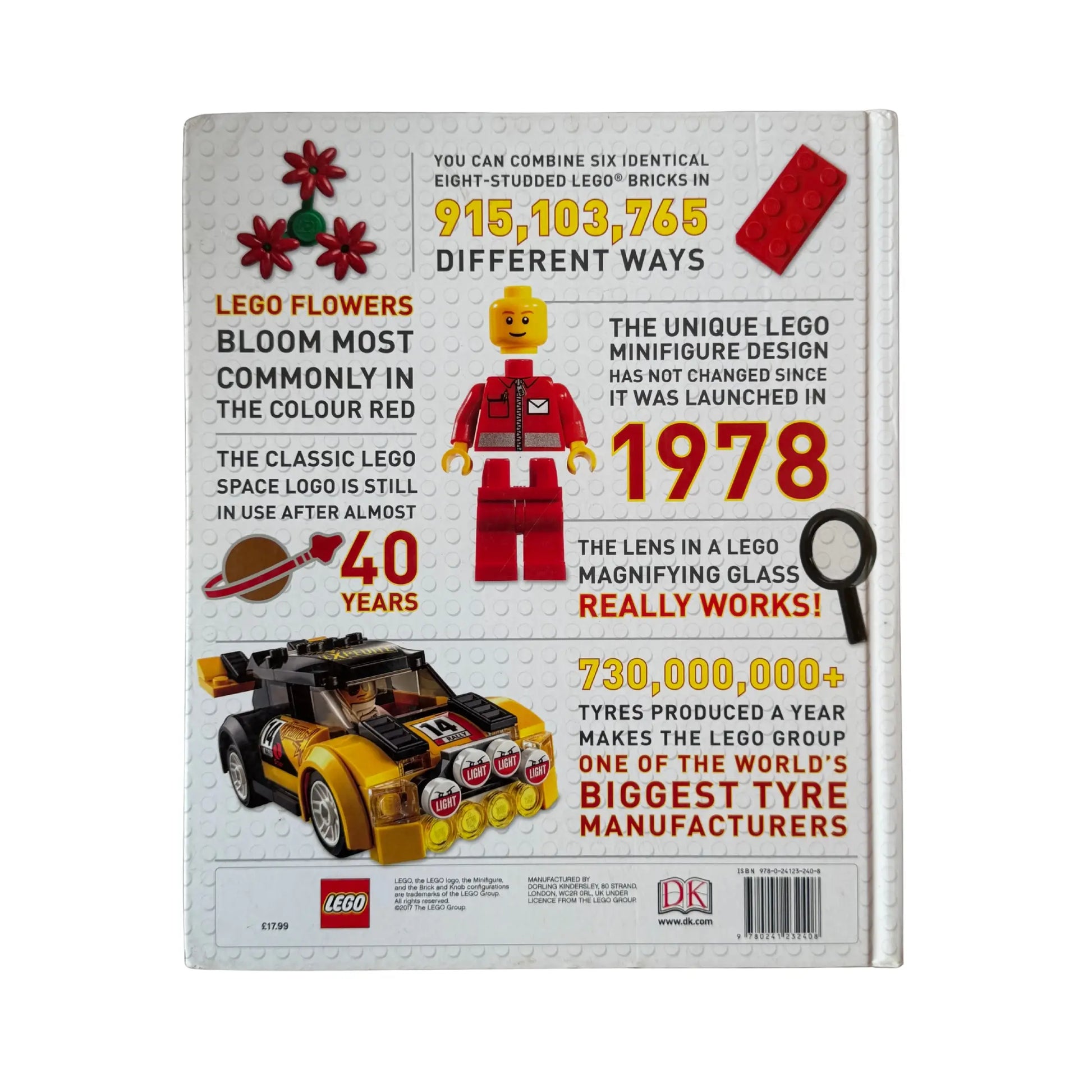 The ultimate collection of LEGO® facts and figures in brick-sized bites of trivia.Can you believe that a wooden duck was one of the first LEGO toys? Or that the LEGO Group is one of the world's largest tyre manufacturers? Have you seen the LEGO Batman minifigure with glow-in-the-dark eyes? And do you know where to find the glass slipper in The Disney Castle set? LEGO Absolutely Everything You Need To Know is crammed with fun and fascinating trivia for LEGO fans of every age.From minuscule minifigure tools to the largest LEGOLAND® model, this book covers all the places, populations, pieces and themes that form the LEGO world.© 2017 The LEGO Group.