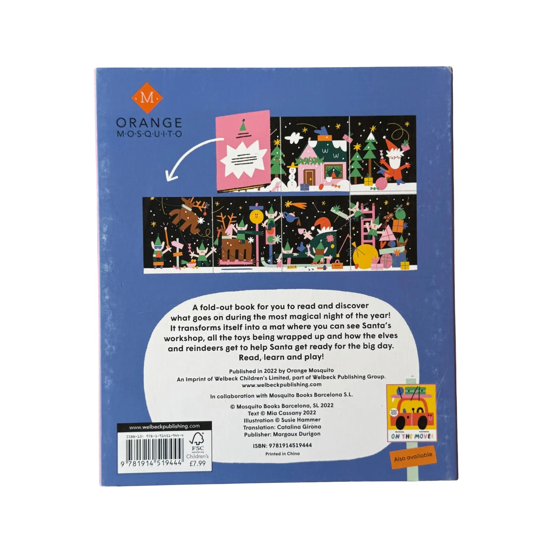 Welcome to the most magical night of the year! "A fold-out volume that shows the work of getting Santa out the door on Christmas Eve....aesthetically quirky"― Publishers Weekly Santa's house is a hive of activity As the elves prepare for all the festivity. Reading the letters is a very big task Have you been good? Santa will ask. Santa's workshop is bursting with toys All sorts of treasures for girls and for boys. This fold-out story book allows you and your child to discover what goes on during the most magical night of the year! It transforms itself into a mat where you can see Santa's workshop, all the toys being wrapped up and how the elves and reindeers get to help Santa get ready for the big day.
