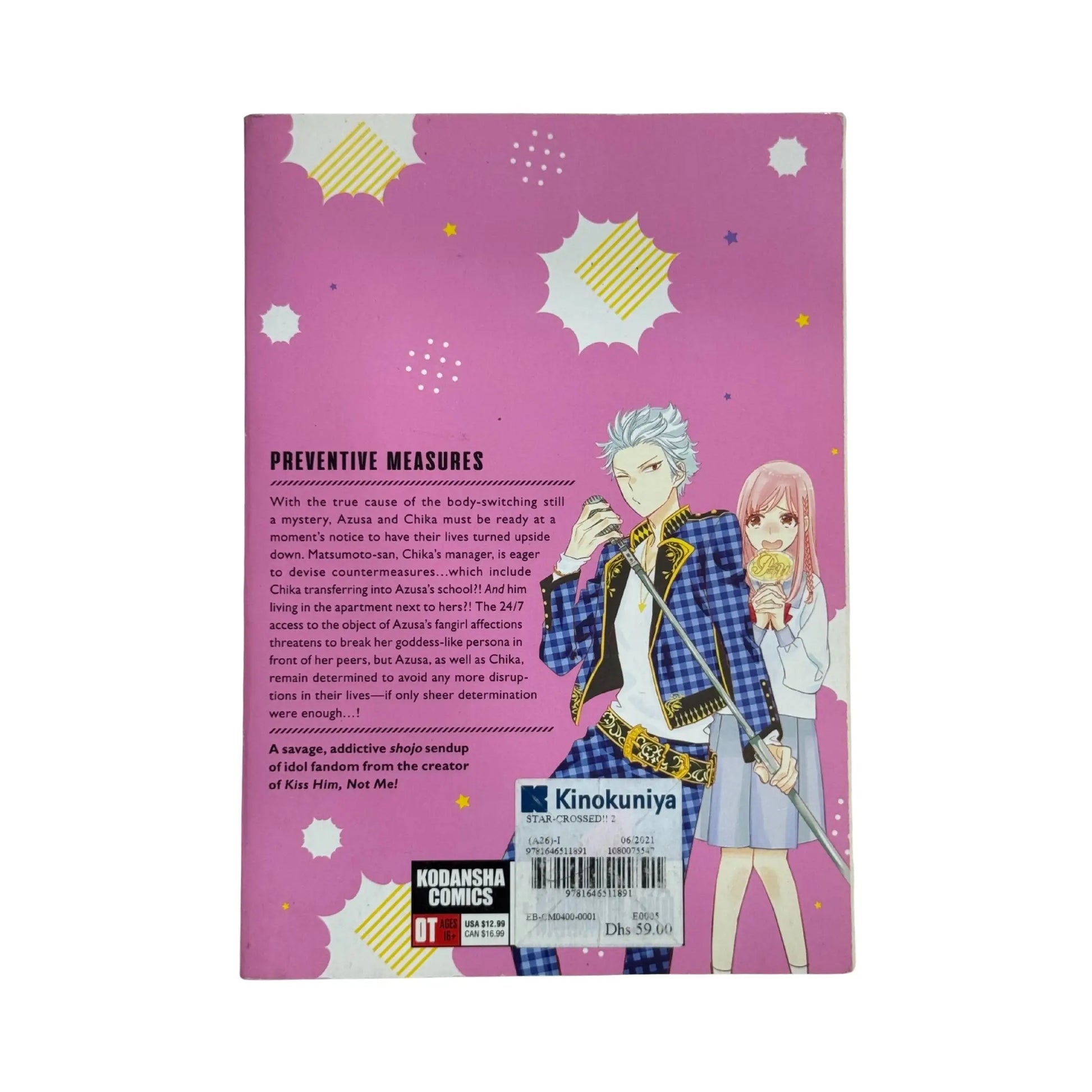 From the creator of the hit manga and anime Kiss Him, Not Me! comes another off-the-wall, geeky shojo comedy! A series of mixups leads to God misplacing the souls of a girl and the handsome idol singer she adores—in each other's bodies! And they can switch back and forth by...kissing?!With the true cause of the body-switching still a mystery, Azusa and Chika must be ready at a moment’s notice to have their lives turned upside down. Matsumoto-san, Chika’s manager, is eager to devise countermeasures…which include Chika transferring into Azusa’s school? And him living in the apartment next to hers?! The 24/7 access to the object of her fangirl affections threatens to break her goddess-like persona in front of her peers, but Azusa, as well as Chika, remain determined to avoid any more disruptions in their lives—if only sheer determination were enough…