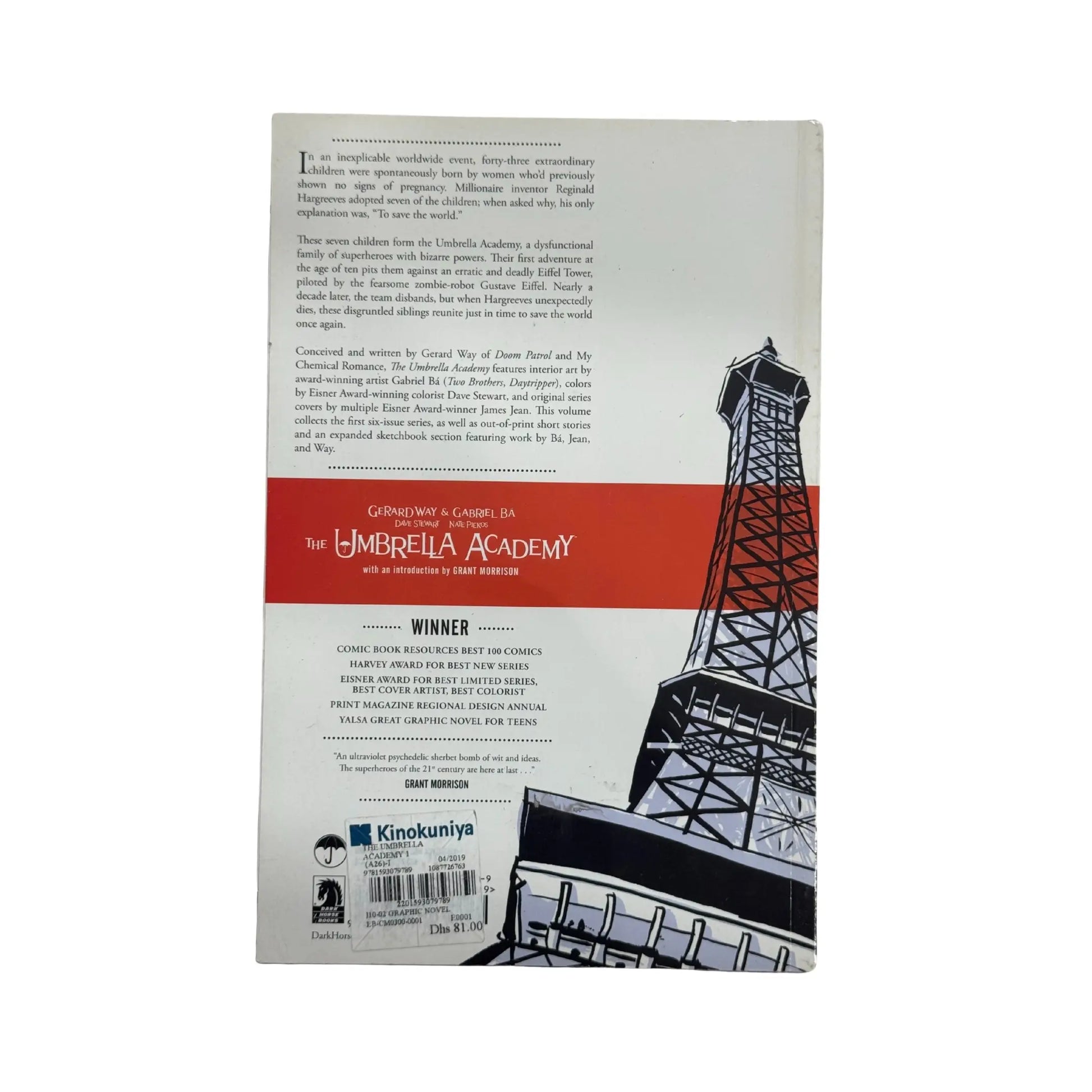 Gerard Way, of My Chemical Romance, makes his comics writing debut in this outrageous superhero epic that Grant Morrison called "An ultraviolet psychedelic sherbet bomb of wit and ideas. The superheroes of the 21st century are here at last..." In an inexplicable, worldwide event, forty-seven extraordinary children were spontaneously born by women who'd previously shown no signs of pregnancy. Millionaire inventor Reginald Hargreeves adopted seven of the children; when asked why, his only explanation was, "To save the world." These seven children form The Umbrella Academy, a dysfunctional family of superheroes with bizarre powers. Their first adventure at the age of ten pits them against an erratic and deadly Eiffel Tower, piloted by the fearsome zombie-robot Gustave Eiffel. Nearly a decade later, the team disbands, but when Hargreeves unexpectedly dies, these disgruntled siblings reunite just in time to save the world once again