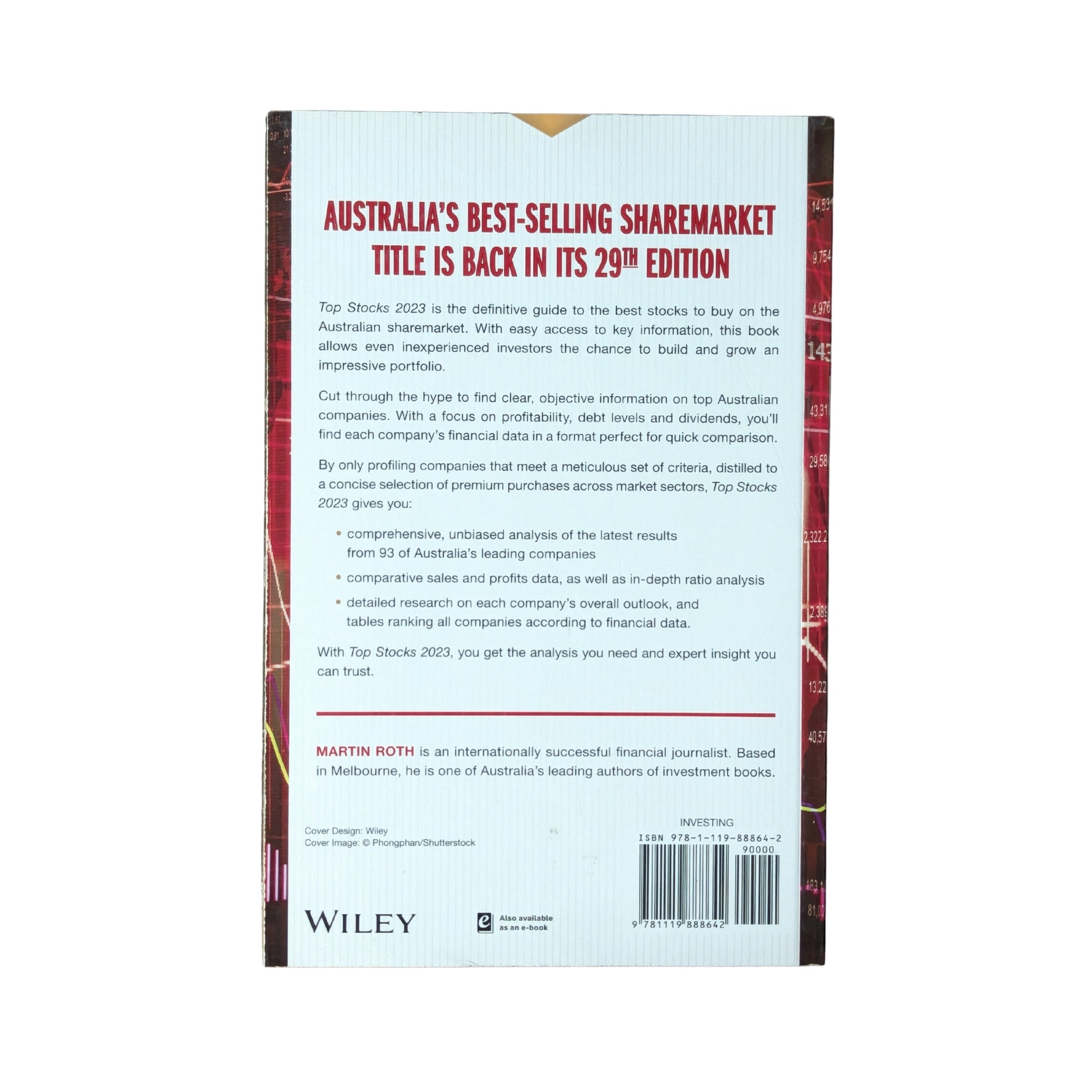Your trusted guide for smart investing in the Australian sharemarket In Top Stocks 2023, the 29th edition of this definitive bestseller, market expert Martin Roth gives you the essential knowledge and tried-and-tested techniques you need to grow your portfolio and profits. An invaluable resource for all skill levels—from novice to professional—this book provides the clear and objective information essential to making the right picks and getting more for your money. You'll learn how to use selection criteria and rigorous analysis to form a clear picture of the best public companies—low-risk, long-term value—to buy into. You'll see beyond the hype, the pricing, and the punditry. And you’ll become an expert at evaluating the best of the Australian market using concrete factors like profitability, debt levels, and dividends. Detailed, unbiased analysis of the latest results from top Australian companies Comparative sales and profits data, and in-depth ratio analysis Comprehensive research exploring each company's overall outlook Additional tables that rank all companies according to financial data When it's time to invest your earnings, you need accurate and trusted guidance that will weather cycles, outlive fads, and stand the test of time. With numerous charts and tables that provide easy reference to essential company data points, Top Stocks 2023 continues to be your jargon-free, go-to guide for making wise decisions for your wealth and your future.